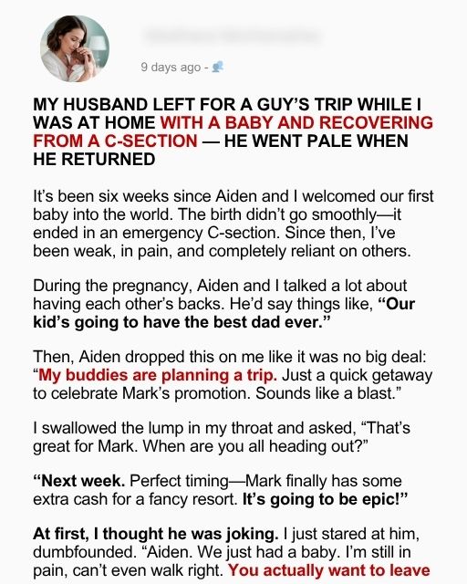 My Husband Left For A Guyโs Trip While I Was At Home With A Baby And Recovering From A C-Section โ He Went Pale When He Returned
