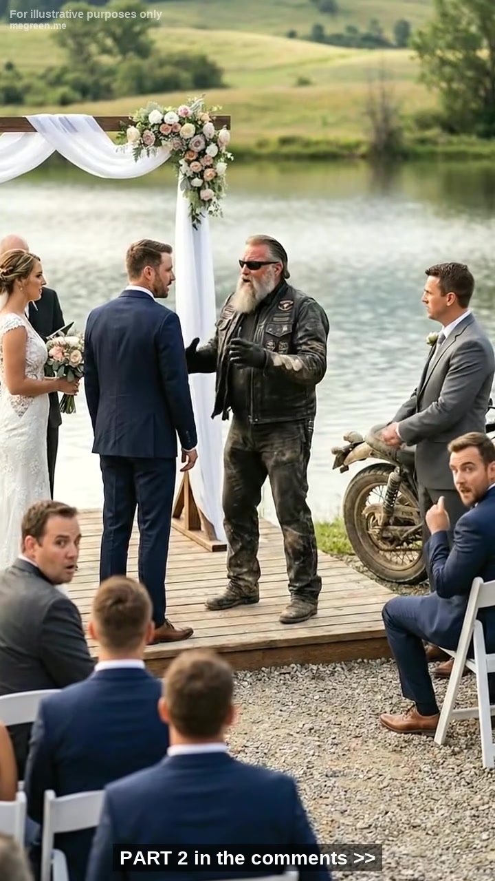 A Groom Was Reading His Wedding Vows in a Quiet Small-Town Ceremony When a Leather-Clad Stranger Stepped Onto the Stage – Unaware the Interruption Was Planned Years Earlier…