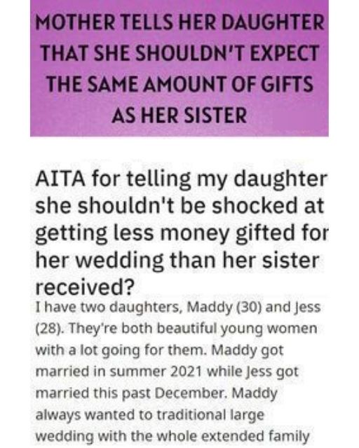 My Mom Gave My Sister A Huge Wedding Gift—And Told Me Not To Expect The Same