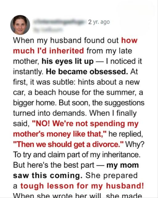 When My Husband Found Out How Much I’d Inherited From My Late Mother, His Eyes Lit Up