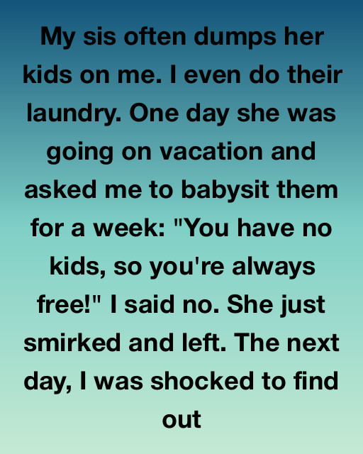 I told her no. Firmly. I had work. A life. Plans. I was tired. I wasn’t her built-in nanny.