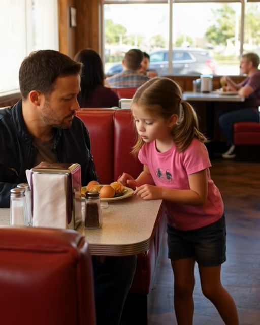 His eyes were fixed on the big mirror running along the diner wall. It was the same mirror everyone used to check their hair. But he wasnโ€™t looking at his own reflection. He was looking at the reflection of the booth.